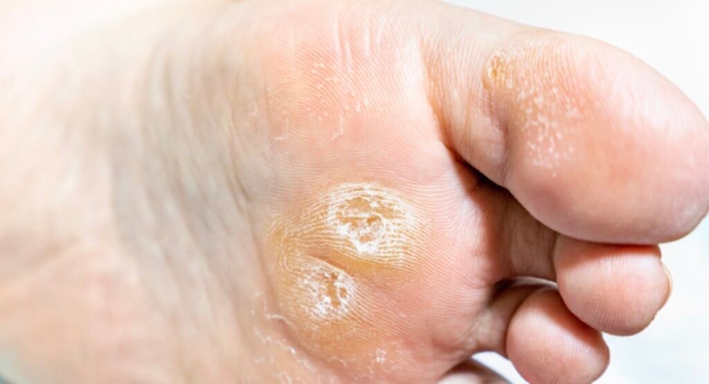 Corns and Calluses areas of thickened, hardened skin that form in response to repeated pressure or friction. They develop as a protective reaction: when the outer skin layer (the epidermis) is exposed to constant irritation, the body produces extra keratin to shield the deeper tissues. While this process is meant to defend the skin, excessive thickening can lead to discomfort, pain, or even inflammation.